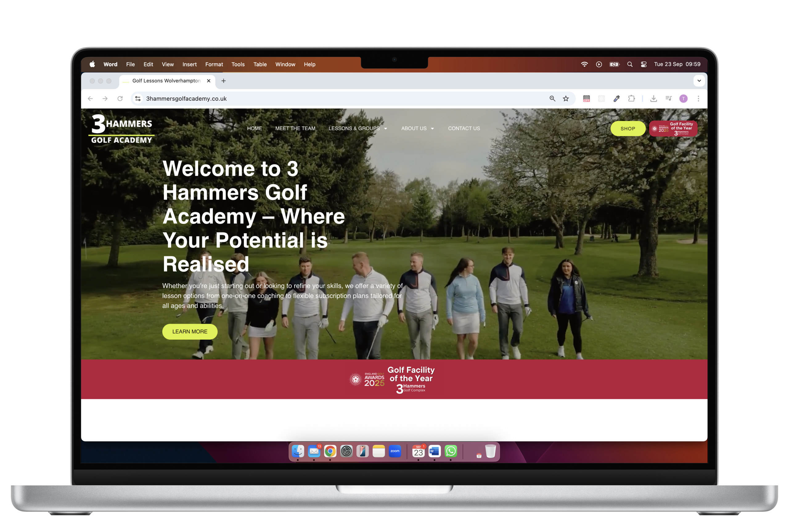 3 Hammers golf academy needed a modern up-to-date website complimenting their success of winning Golf Facility of the Year 2025. Built with SEO in mind, giving their customers a simple flow to get the information they need and book lessons.